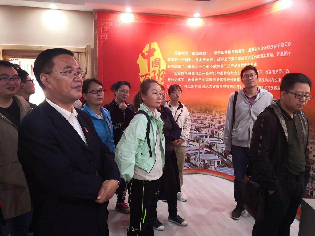在村委会会议室,五十镇驻班彦村干部李生宝给全体党员和教师介绍了班彦村易地扶贫搬迁项目实施情况,基础设施和村级产业项目的实施情况。观看了班彦村发展成果的电视片。参观了村级产业盘绣园、酪馏酒坊、农家乐、光伏发电板,实地感受了非物质文化盘绣的技艺、酪馏酒酿造工艺、土族农家的幸福生活。