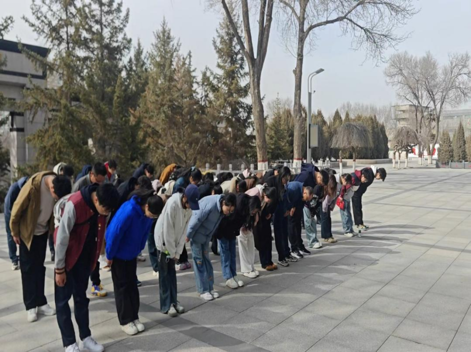 走出纪念馆之后,我们的心情久久不能平复。我们前往英雄移植并进行缅怀,在三位支部书记的组织下,我们心中涌动着无尽敬意,身体缓缓前倾,郑重地向英烈三鞠躬,每一次弯腰,都饱含对他们深深的追思与缅怀。