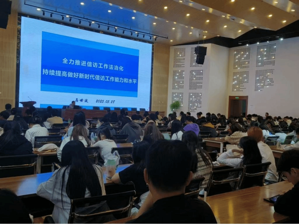 随后,马世波主任围绕“认清信访工作时代定位;信访工作体制机制设计;提升依法履职能力水平”三个方面展开了深入而全面的报告。马主任指出,信访工作是党的群众工作的重要组成部分,是了解社情民意的重要窗口,在新时代具有不可替代的重要作用。他结合实际案例,阐述了信访工作在维护群众合法权益、促进社会和谐稳定等方面的积极意义,让师生们深刻认识到信访工作的时代价值和使命担当。报告过程中,马主任旁征博引、深入浅出,既有理论高度,又有实践深度,赢得了师生们的阵阵掌声。