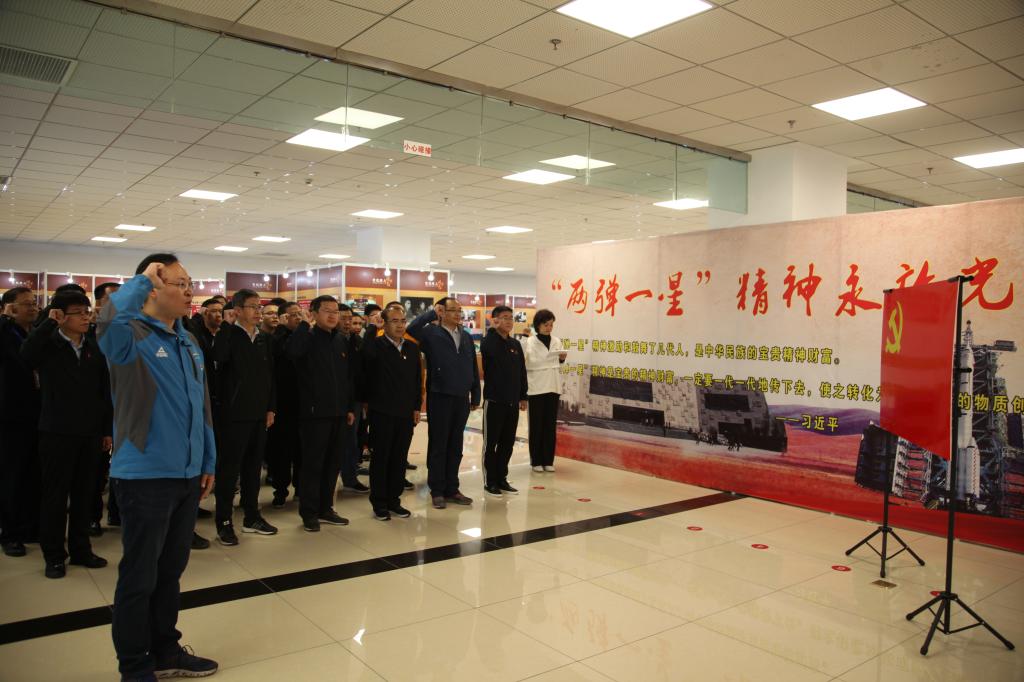 “两弹一星”精神展览馆,全体党员干部面向党旗重温入党誓词,铿锵誓言声声入心。展馆里,一张张历史照片、一件件珍贵资料让党员同志们深刻感受到当年我国老一辈科研工作者“热爱祖国、无私奉献,自力更生、艰苦奋斗,大力协同、勇于攀登”的“两弹一星”精神。纷纷表示将学习老一辈科学家不畏艰难、淡泊名利、坚忍不拔的优秀品质,发挥党员先锋模范作用,在本职岗位上凝心聚力,努力奋进。