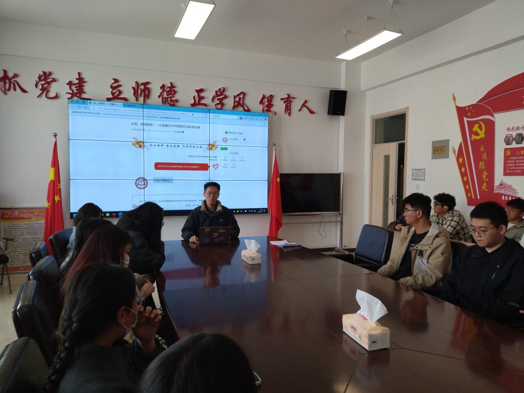 之后由李骁老师给同学们讲解了西部计划报考的政策及报考的重大意义,同时根据青海省省考的省情,从报考年限、报考时付出的经济成本、报考岗位的比例及考试结构等给毕业生们具体分析了当下积极就业的必要性。鼓励动员同学们珍惜当下,抓住就业机会,积极落实就业去向。最后,张晶晶老师给毕业生们解答了签约时违约金赔偿、就业协议书盖章、教团队格考试等相关事宜。