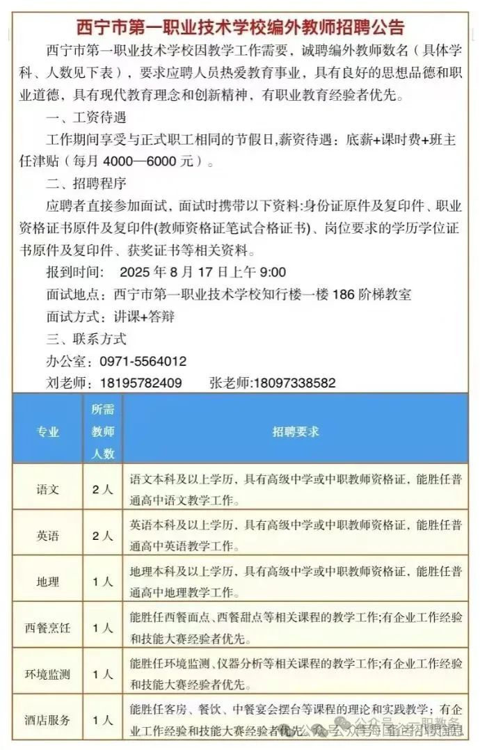 西宁市第一职业技术公司招聘8人-3377体育网站网页就业信息网