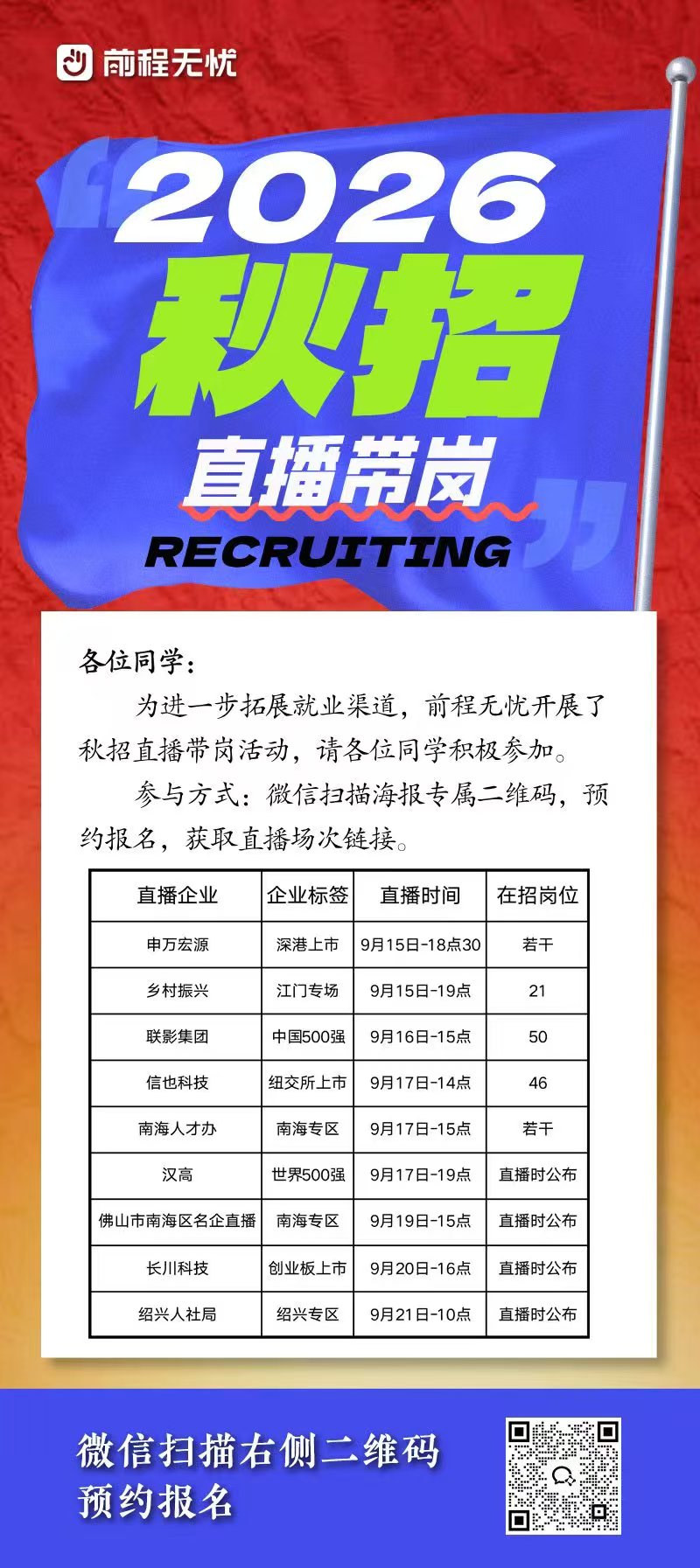 前程无忧2026秋招直播带岗(9月15日—21日)