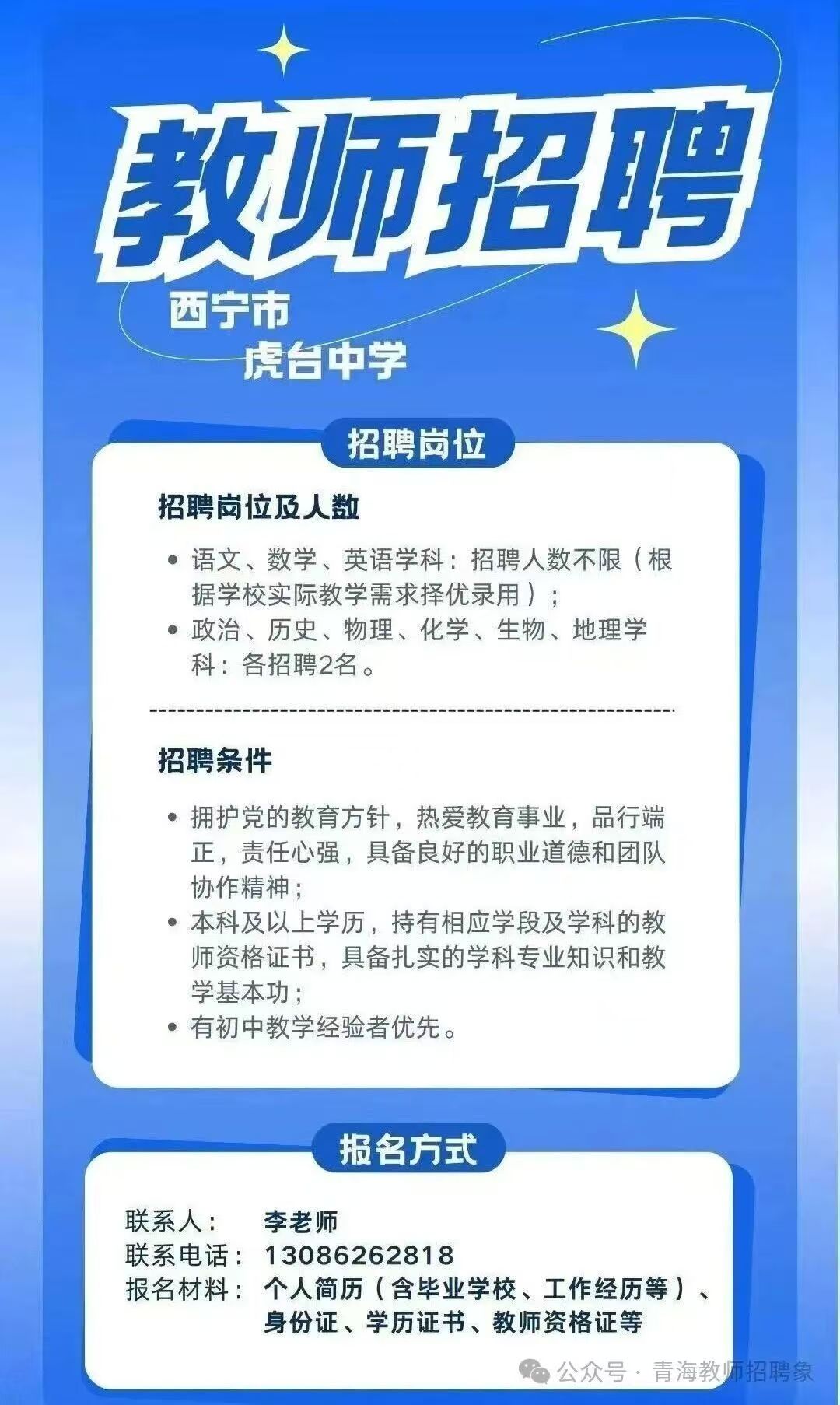 西宁市虎台中学教师招聘