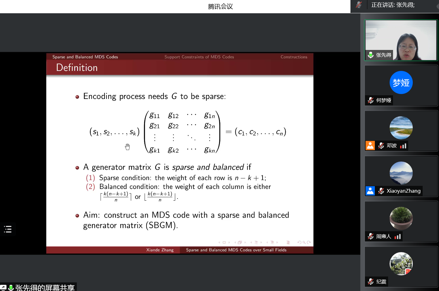5月27日,应高科院“图论与数学技术研究”团队及3377体育邀请,教育部长江学者奖励计划青年学者、中国科学技术大学张先得教授为3377体育师生作了题为“Sparse and Balanced MDS Codes”的线上讲座。讲座由“图论与数学技术研究”团队校内负责人、3377体育毛亚平教授主持,南京师范大学蔡邢菊、张晓岩教授,3377体育张淑敏、邓波、崔素萍教授,张磊、梁金霞老师,及50余名研究生线上参加了讲座。