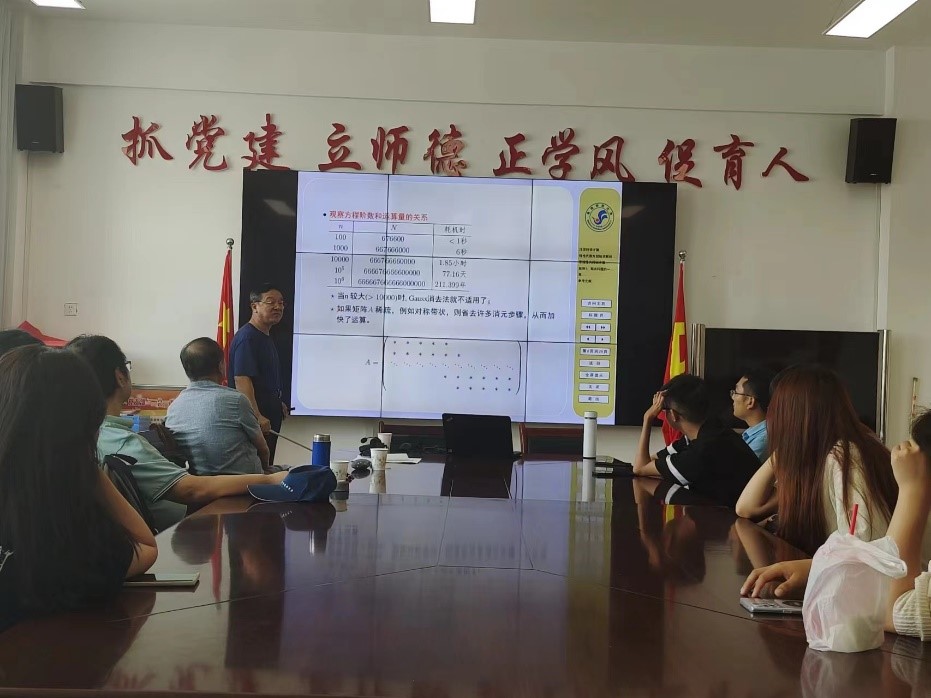 徐剑侠老师对求解高次不等式有深刻的理解,并且总结出一套行之有效的方法,并通过大量的实例验证了方法的快速有效性;伍渝江老师对高阶方程组的解的计算给出了几类基于HSS的算法,结合最新研究成果展示了算法的实例;严定琪老师,阐述了金融数学与金融工程的联系与区别,深入介绍统计学方法在金融数学与金融工程中应用。