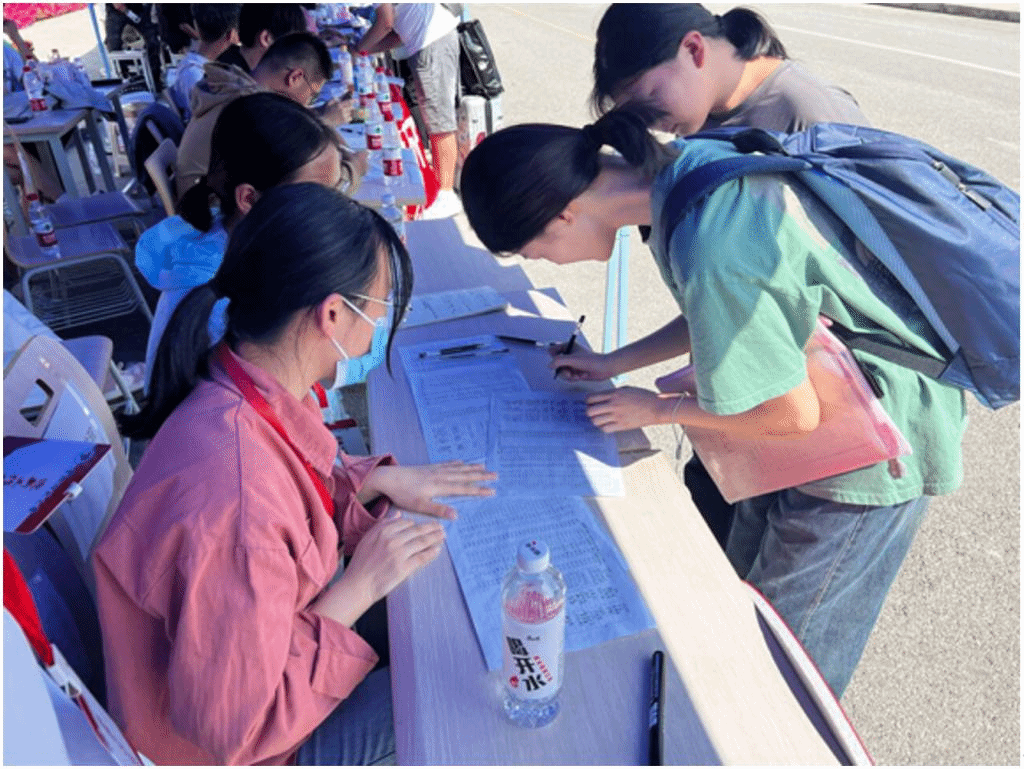 报到现场设置了多个服务点,老师们和员工志愿者们耐心地为新生解答各种问题,确保报到工作高效有序地进行。同时在报道点设有签名墙,并拍照留念。2024级新生们意气风发,笑容洋溢,奔赴理想,筑梦未来。