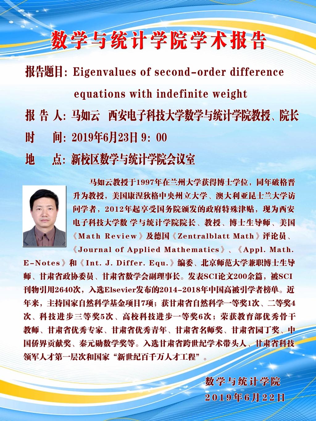 讲座:6月23日 Eigenvalues of second-order difference equations with indefinite weight