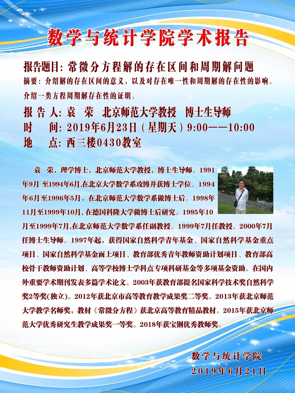 讲座:6月23日 常微分方程解的存在区间和周期解问题