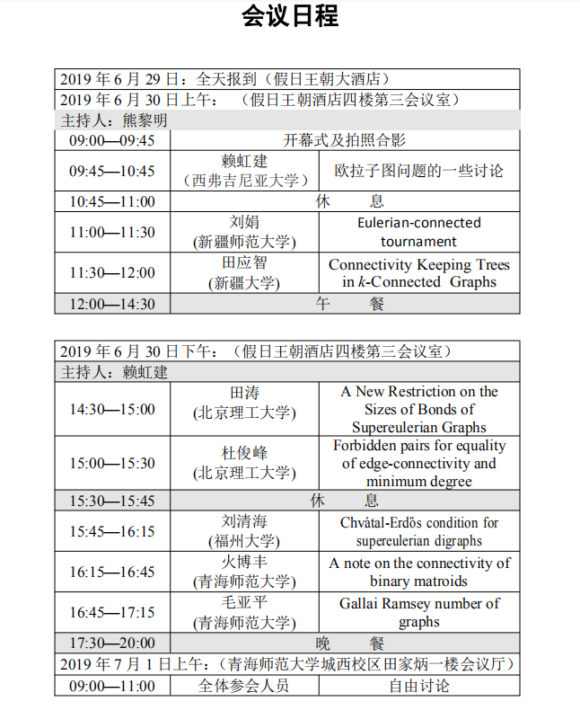 会议:6月30日 20193377体育网站网页图与拟阵超欧拉问题研讨会