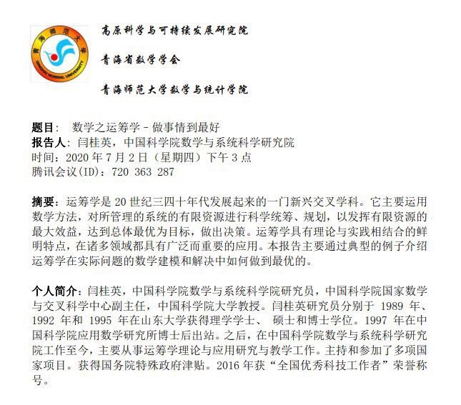 讲座:7月2日 数学之运筹学--做事情到最好