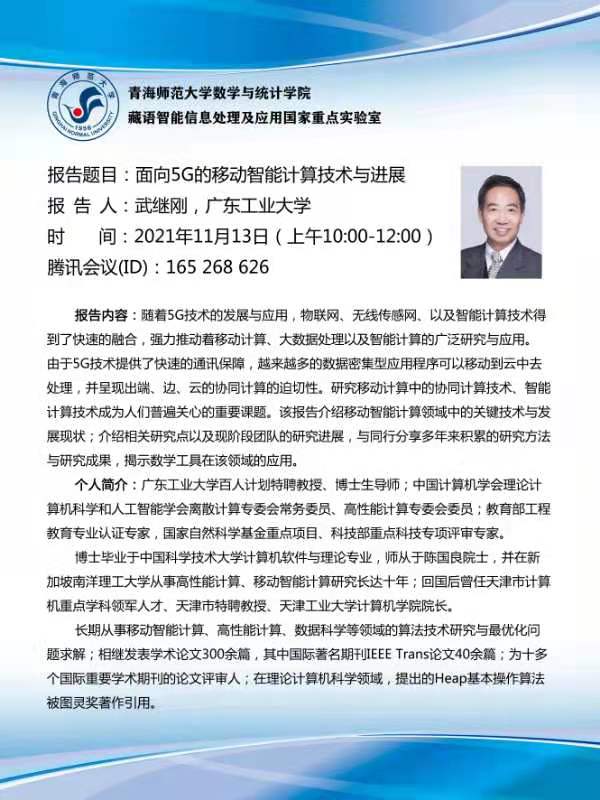 讲座(在线):11月13日 面向5G的移动智能计算技术与进展