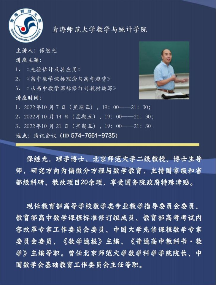 系列讲座(在线): 10月7日-21日 保继光 先验估计及其应用等