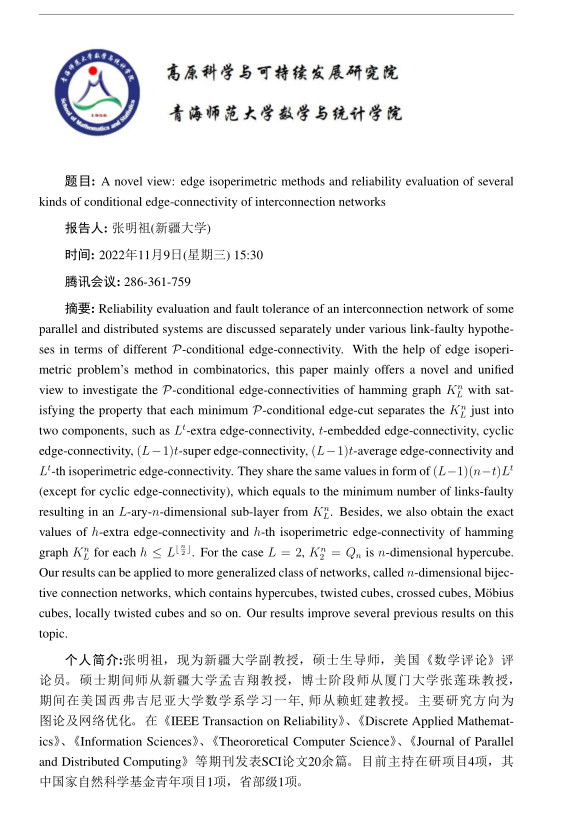系列讲座(在线):11月9日 张明祖 A novel view:...