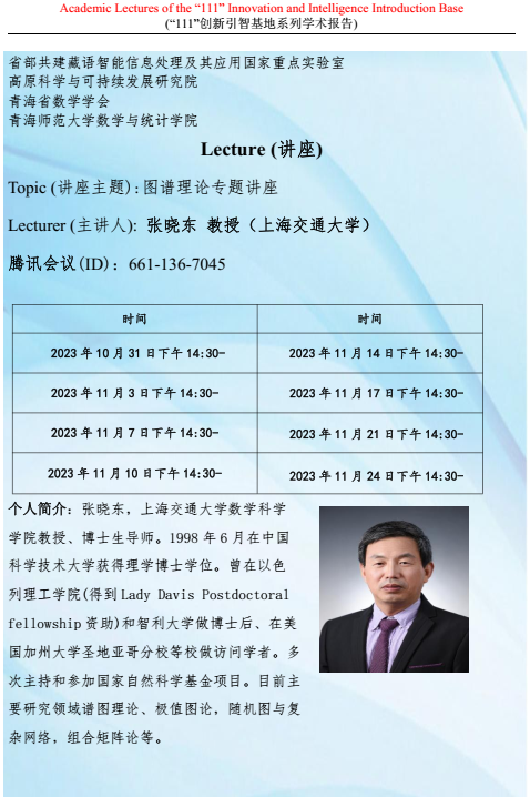 系列讲座(在线):10月31日-11月24日 张晓东 图谱理论专题讲座