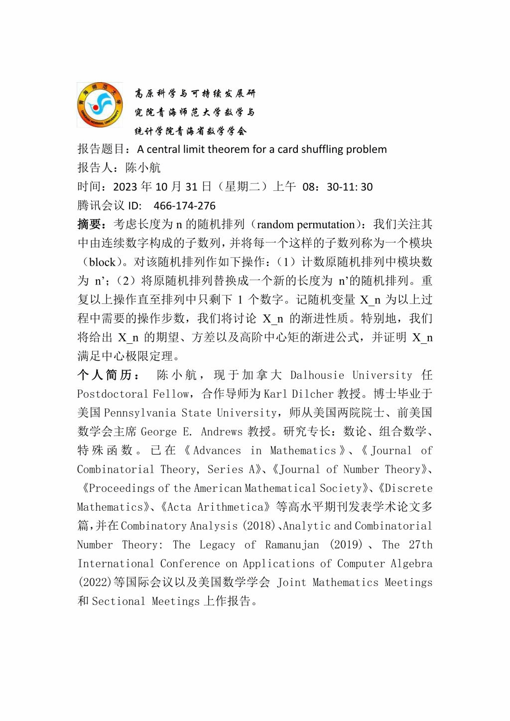 讲座(在线):10月31日 陈小航 A central limit theorem for a card shuffling problem