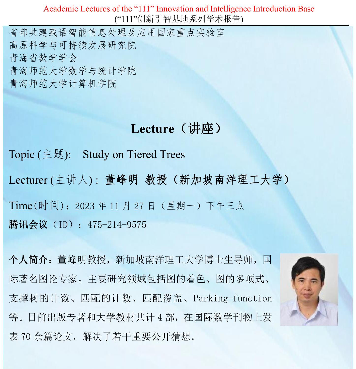 讲座(在线):11月27日 董峰明 Study on Tiered Trees