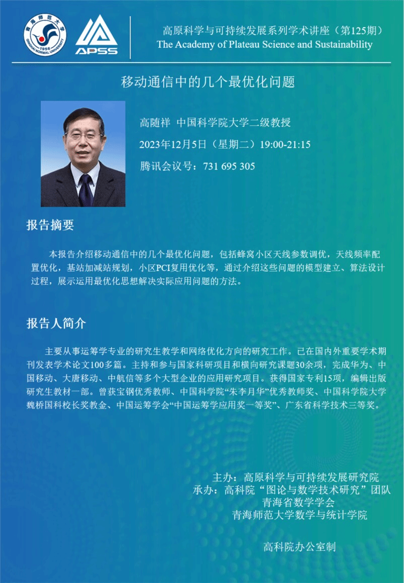 讲座(在线):12月5日 高随祥 移动通信中的几个最优化问题