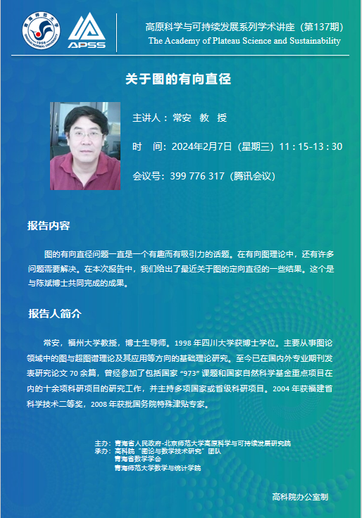 讲座(在线):2月7日 常安 关于图的有向直径