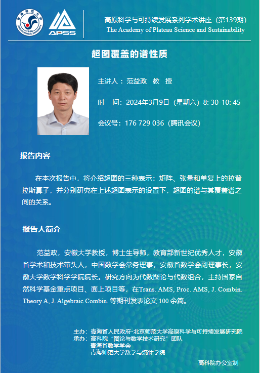 讲座(在线):3月9日 范益政 超图覆盖的谱性质