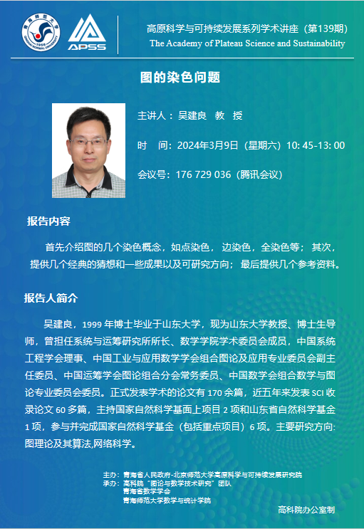 讲座(在线):3月9日 吴建良 图的染色问题