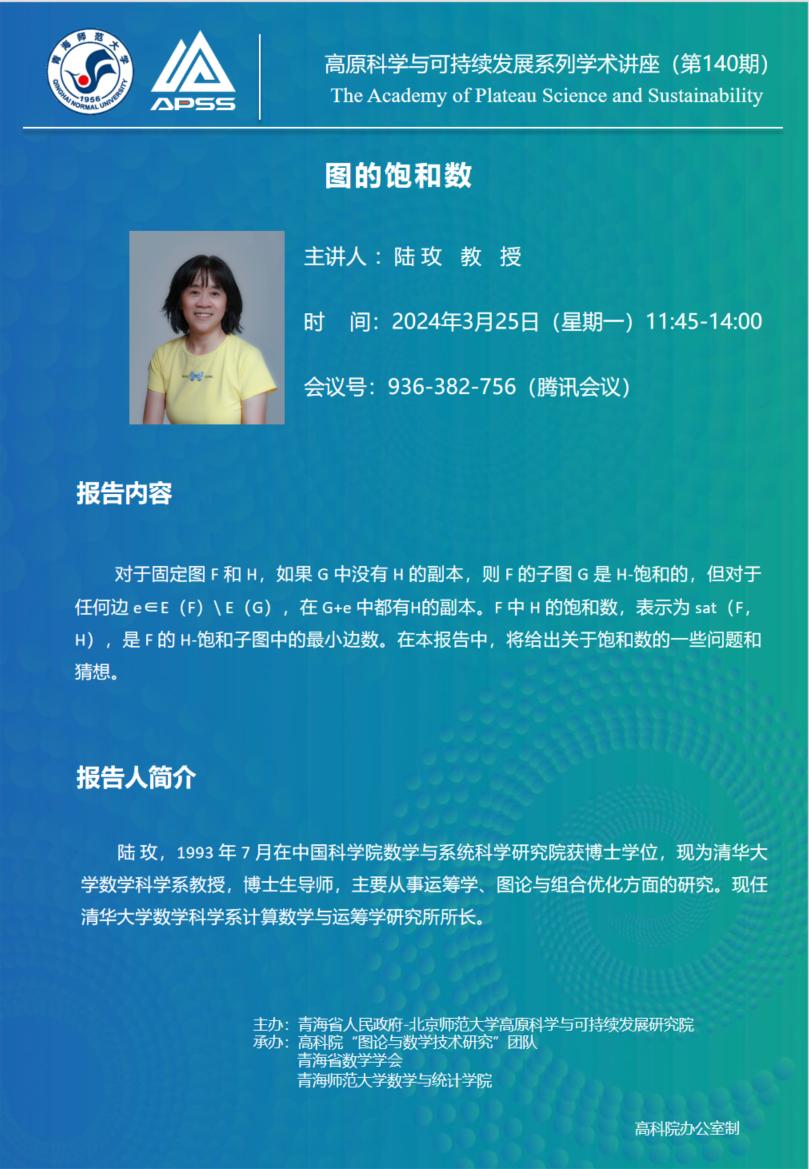 讲座(在线):3月25日 陆玫 图的饱和数