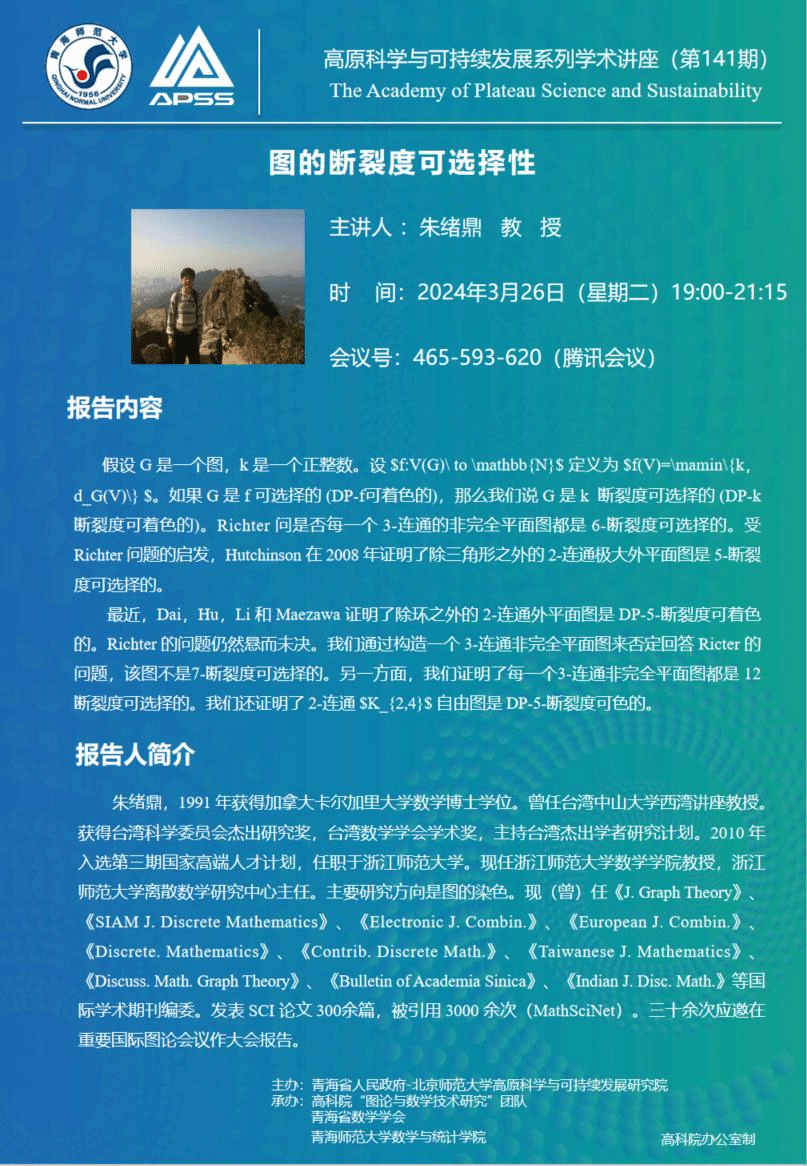 讲座(在线):3月26日 朱绪鼎 图的断裂度可选择性