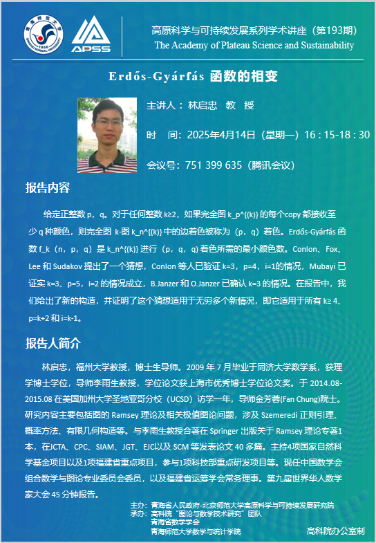 讲座(在线):4月14日 林启忠 Erdős-Gyárfás 函数的相变