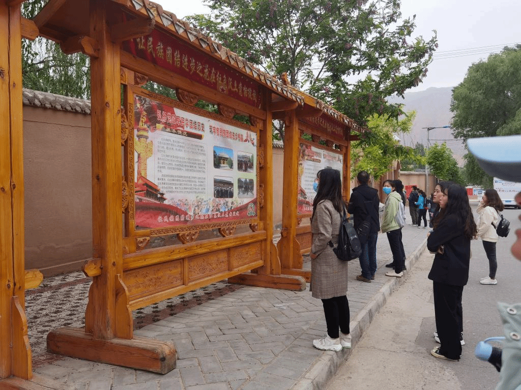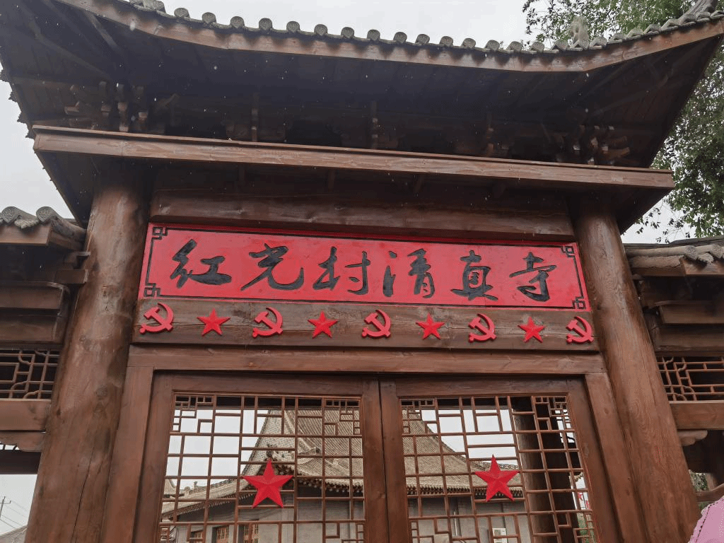 紧接着我们来到了红光村清真寺这是第一个与解放军挂钩的清真寺,当地的撒拉族人不会那么容易接受外来文化,确接受了红军文化的浸染,足以证明解放军的包容,令我们敬佩不已,足以证明四路军被俘多年,依旧心里面装着共产党,这份精神值得流传千古,值千万人歌颂,在修建赞卜乎村清真寺时,战士们冒着生命危险把“五角星”“镰刀”“斧头”等图案烧制在砖瓦中,并放置在礼拜大殿正屋脊上,凝聚了无数心血汗水,表达了共产主义必胜的信念。走到了文化长廊,了解到四路军如何融入到撒拉族,更令人感动的是,尽管赞卜乎村的撒拉族居民与在此服苦役的红军战士彼此间结下了深厚的情谊,有的撒拉族居民还以联姻招亲的方式接纳红军战士,使他们得以生存。