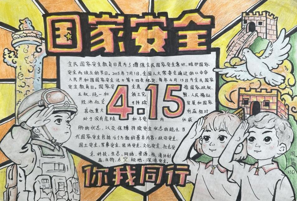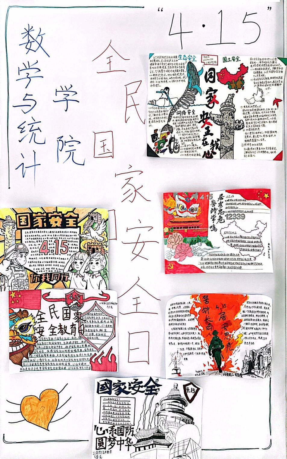 公司开展了以“我眼中的国家安全”为主题的手抄报作品征集活动,通过QQ群聊发布工作动态、创作资源,并利用展板选取获奖同学作品进行了重点展示。